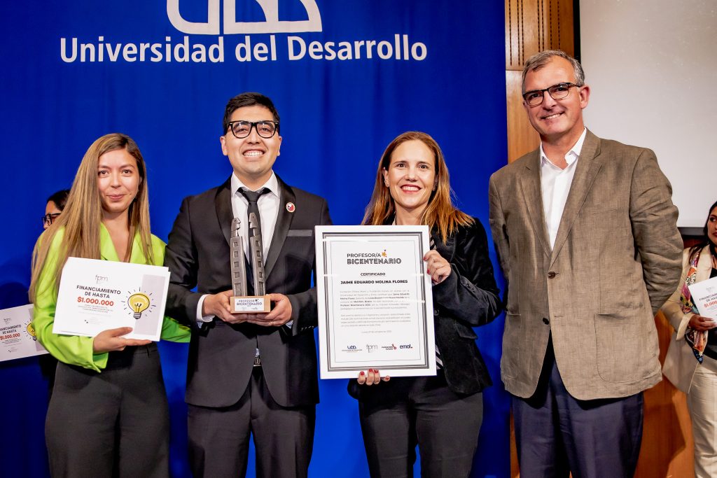 Destacando su labor, innovación y compromiso con la enseñanza, Jaime Molina, docente de Matemáticas del Liceo Bicentenario Nuevo Mundo de Mulchén, fue reconocido con esta distinción. En una emotiva ceremonia realizada en el Aula Magna de la Universidad del Desarrollo (UDD), se llevó a cabo este reconocimiento nacional, organizado por la Fundación Piñera Morel y la Fundación Futuro, en alianza con la UDD y EMOL.